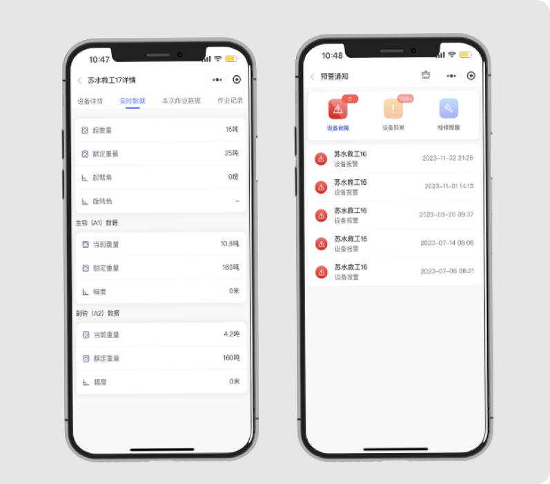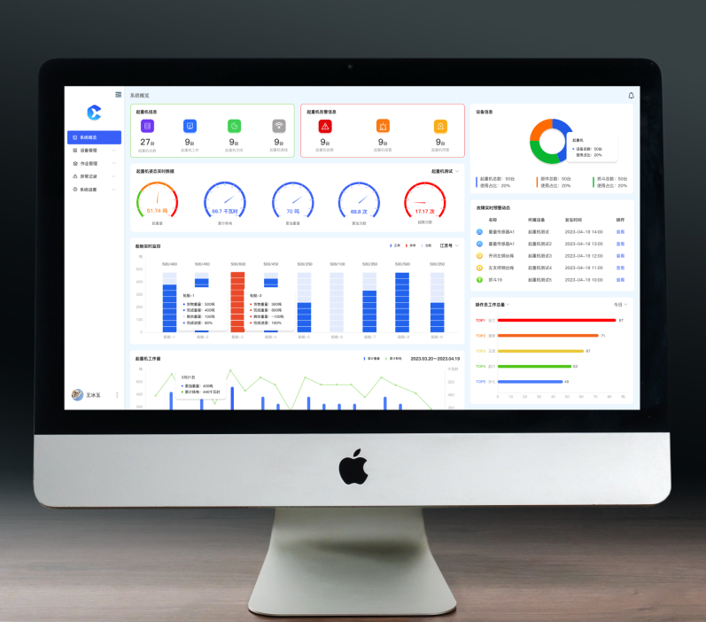 通過4G無線傳輸技術(shù),實(shí)時(shí)獲取力矩限制器、幅度傳感器,高度傳感器,風(fēng)速傳感器,能源電耗等數(shù)據(jù)指標(biāo),并通過可視化界面展示,方便管理者快速做出準(zhǔn)確的決策。